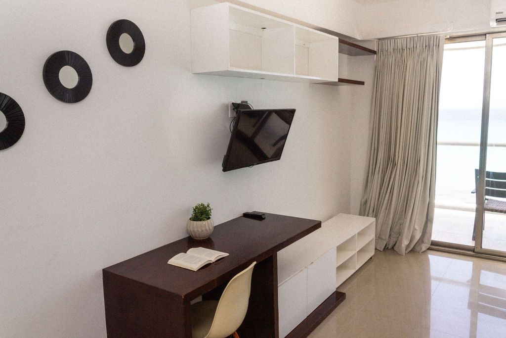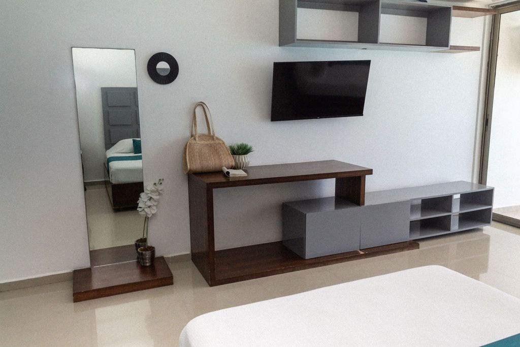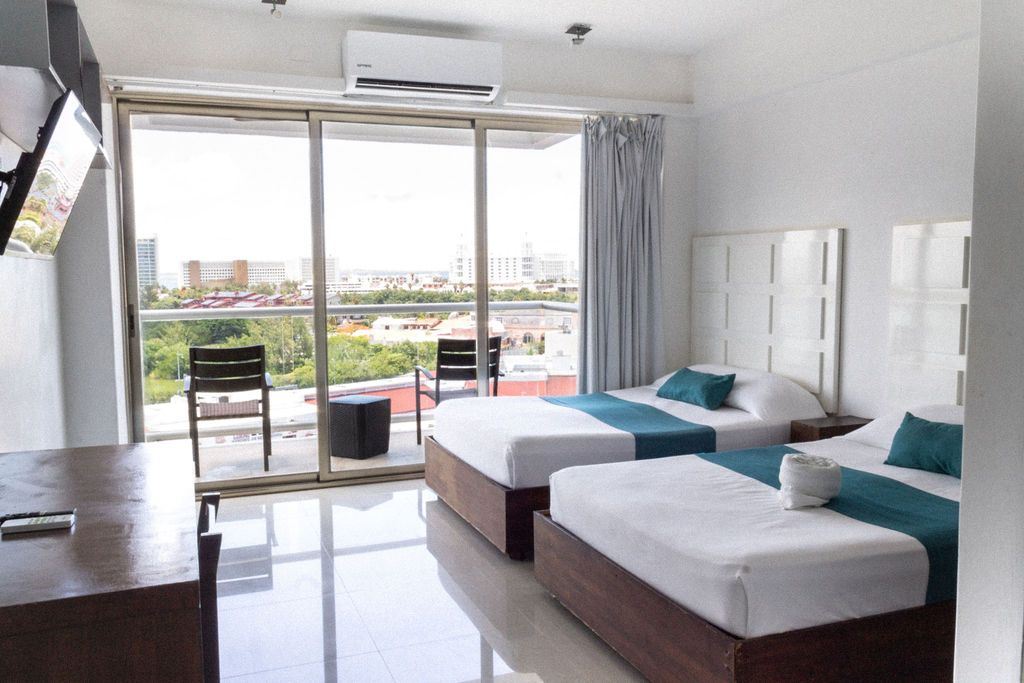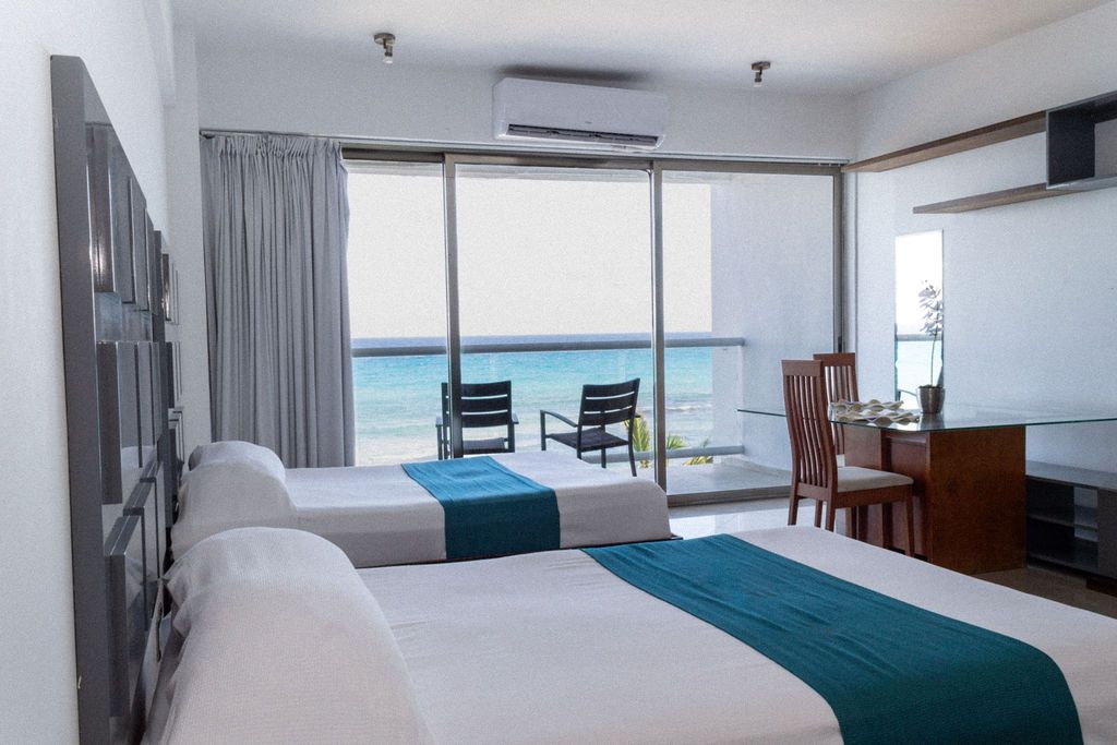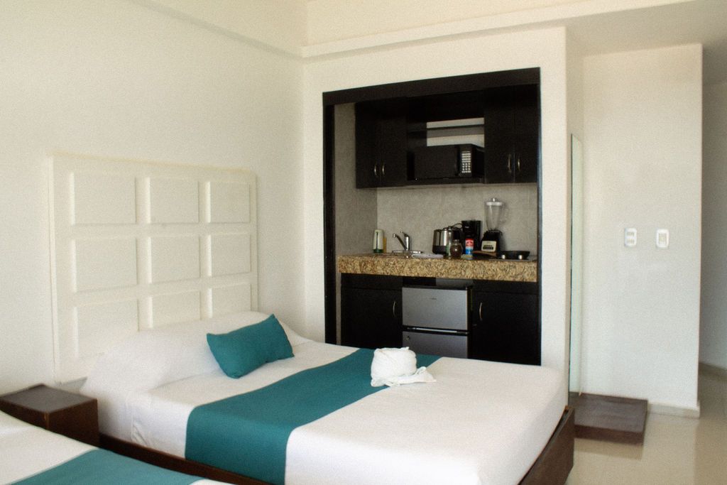 Con todo lo esencial para una estancia cómoda, este estudio sencillo y acogedor cuenta con una cocineta empotrada, televisión, dos camas matrimoniales y balcón privado con vista al Caribe. Perfecto para parejas o viajeros solitarios.