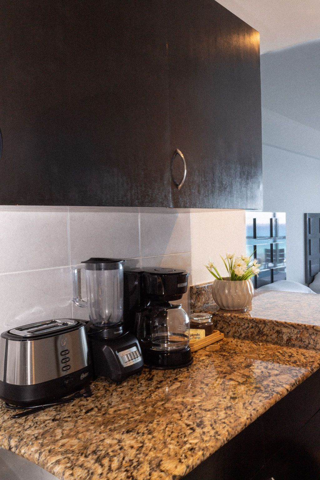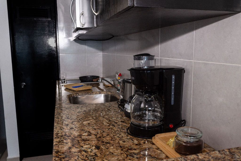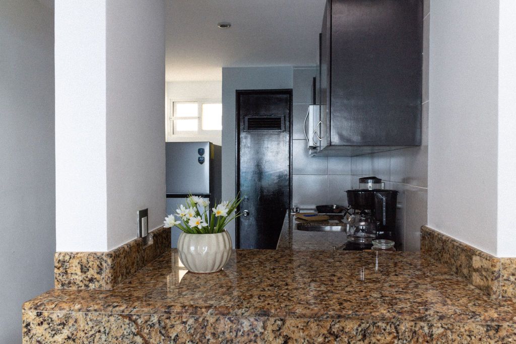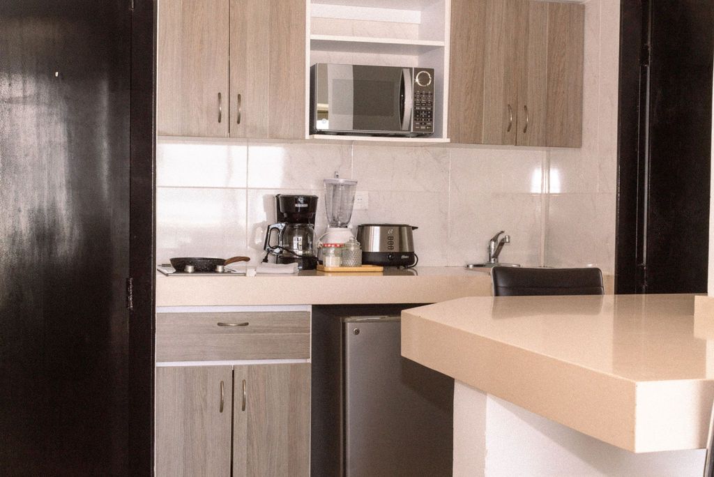 Yaakun Studio es el lugar ideal para quienes buscan más espacio. Además de una cocina en barra y una área para preparar comida, está equipado con un pequeño comedor o sofá cama adicional, que lo convierte en una opción perfecta para estancias cómodas y versátiles frente al mar.