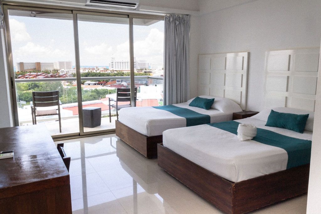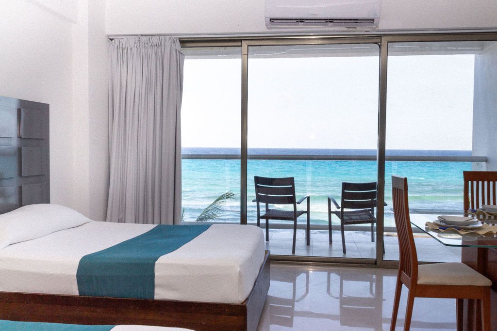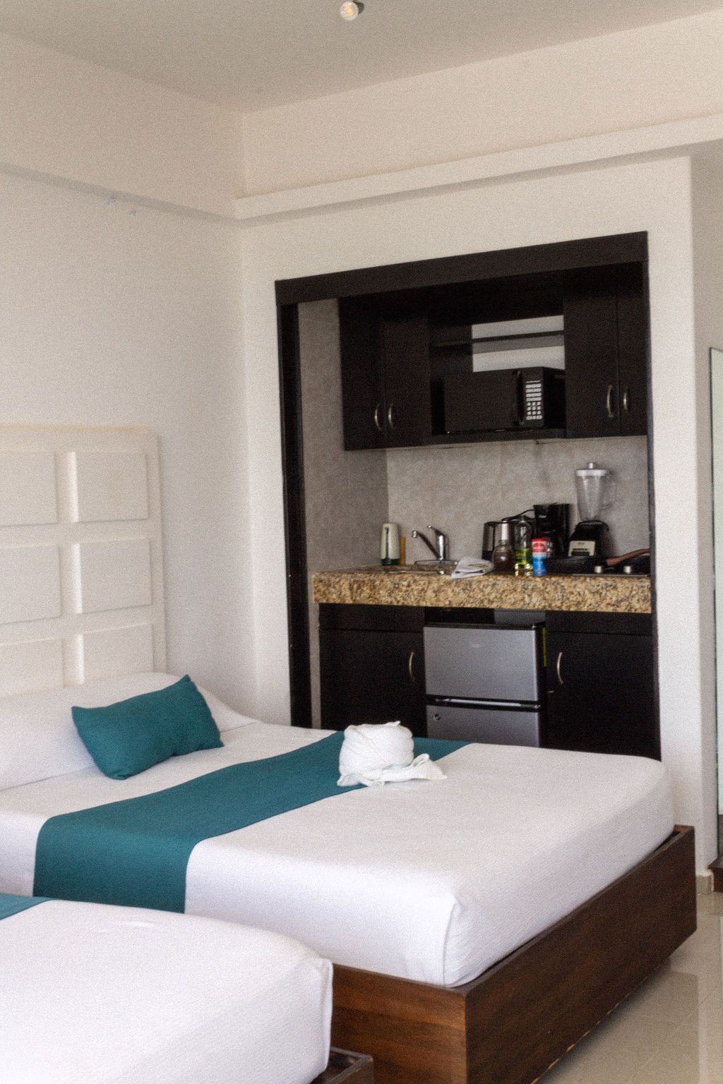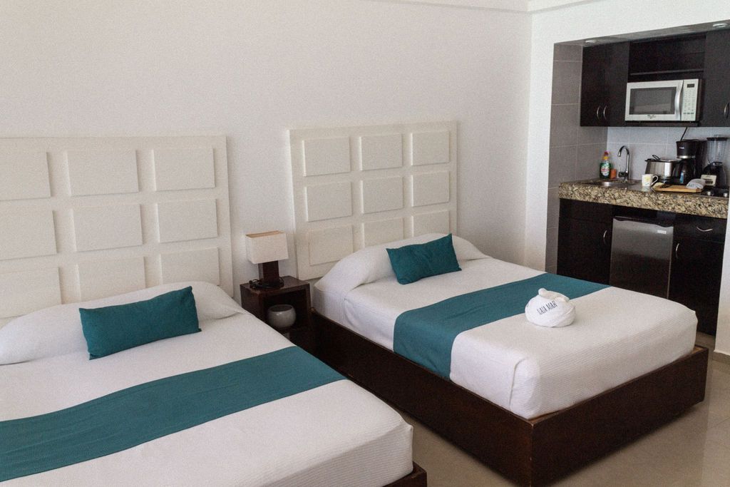 Con todo lo esencial para una estancia cómoda, este estudio sencillo y acogedor cuenta con una cocineta empotrada, televisión, dos camas matrimoniales y balcón privado con vista al Caribe. Perfecto para parejas o viajeros solitarios.